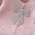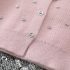 – Jachetă fină de culoare roz pastel, confecționată dintr-un material tricotat moale și pufos. Este decorată cu o fundiță detașabilă, rafinată și strălucitoare în partea din față, precum și cu perle fine care oferă un aspect elegant și sofisticat. Modelul are nasturi tip păpușă pentru o închidere ușoară și este ideal pentru a fi combinat cu fuste vaporoase și rochițe.