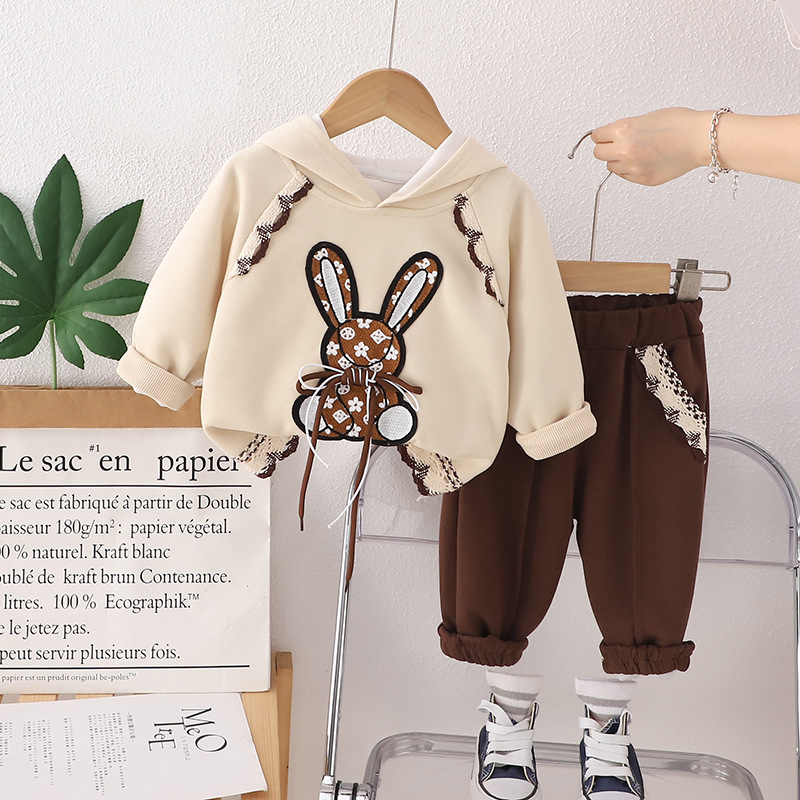 Set Premium de 2 piese cu glugă și cusături moderne Beige Bunny Sissy