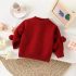 – Pulover confecționat din tricotaj moale, într-o nuanță intensă de bordo. Este decorat cu mari pompoane pe toată lungimea mânecilor pentru un aspect impresionant.
