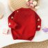 -Pulover din tricotaj fin, moale și plăcut la atingere, de culoare roșu intens. Model cu un design atrăgător în carouri romboidale cu inimioare crem, care oferă un stil deosebit.