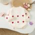 -Pulover din tricotaj fin, moale și plăcut la atingere, de culoare vanilie. Model cu un design atrăgător în carouri romboidale cu inimioare roșii, care oferă un stil deosebit.