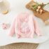 -Pulover din tricotaj de înaltă calitate, de culoare roz deschis. Model cu design atrăgător + aplicație cu drăgălașă cu iepuraș, încrustată cu perle delicate.