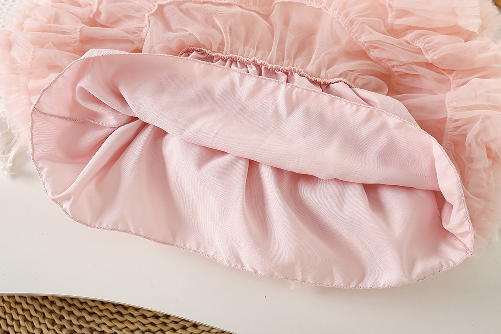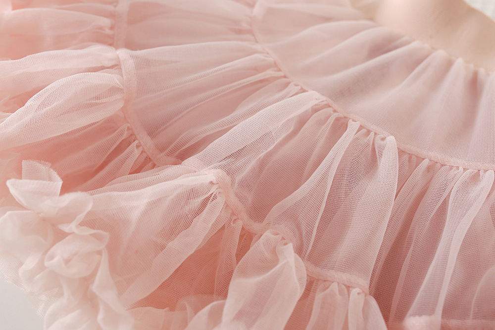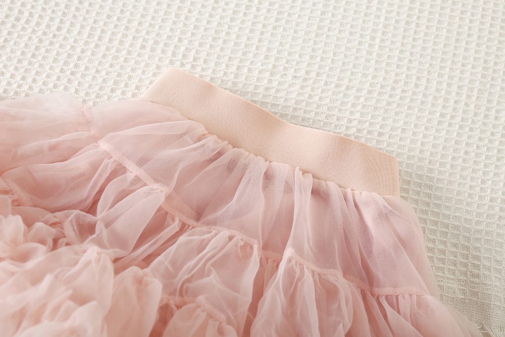 -Fustiță confecționată din material fin, în nuanță roz. Design din tul roz, dispus pe mai multe straturi. Model tip tutu cu volane accentuate pentru un look spectaculos, plus căptușeală din bumbac și talie elastică pentru confort.