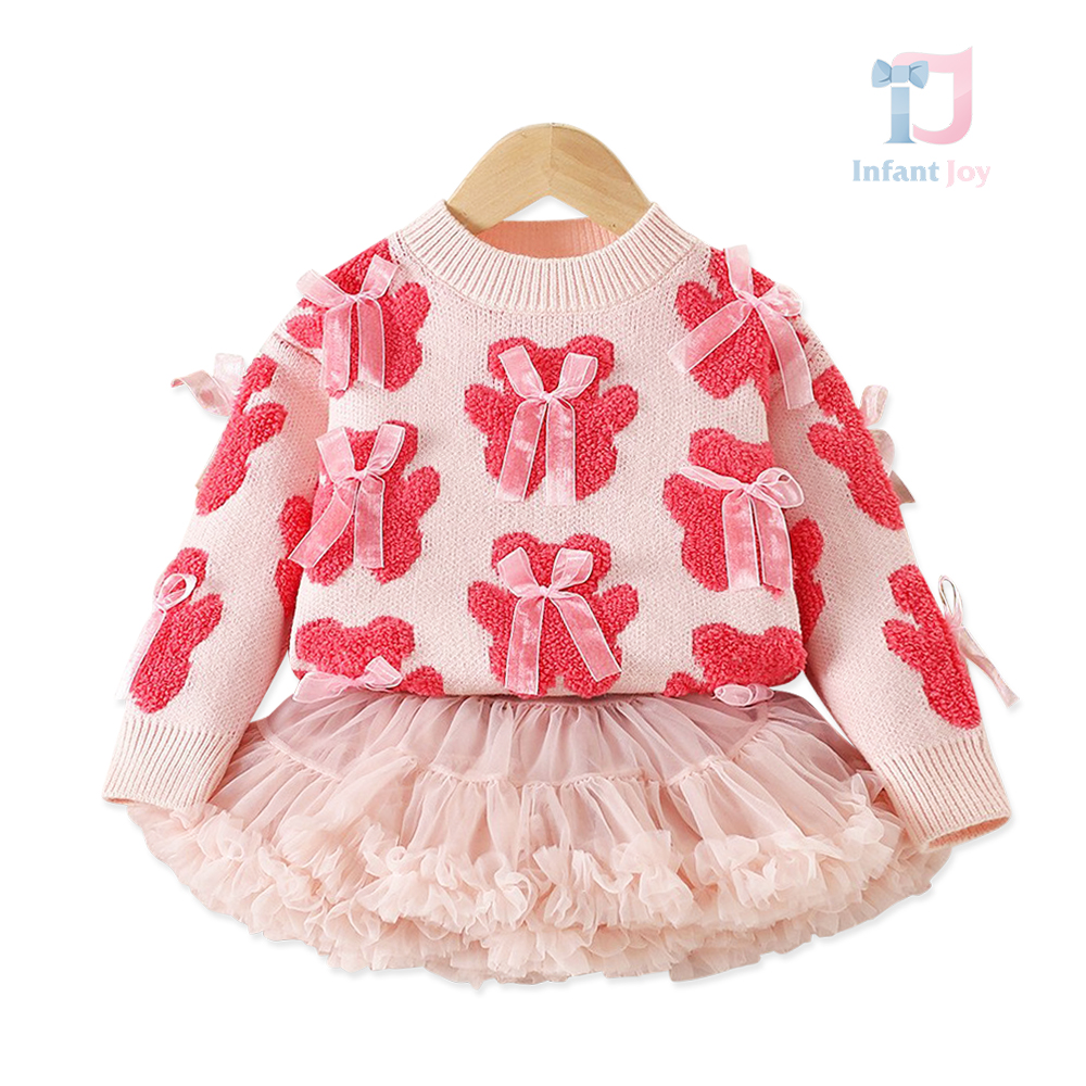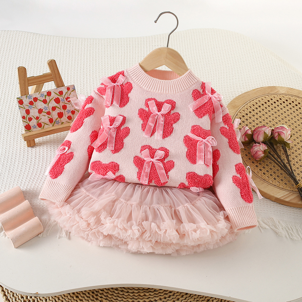 Set premium de 2 piese cu pulover și fustă cu tutu voluminos Berry Ribbon Pink