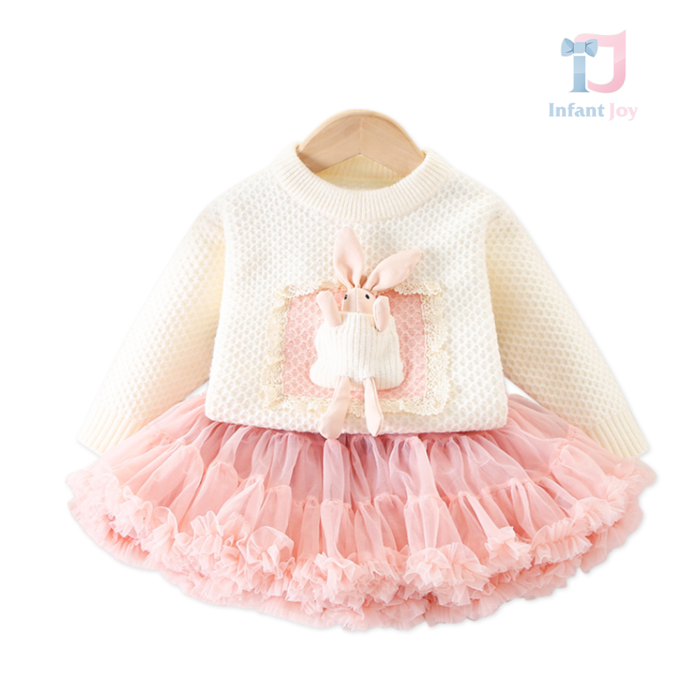 Set premium de 2 piese cu pulover și fustă cu volane generoase Pocket Bunny