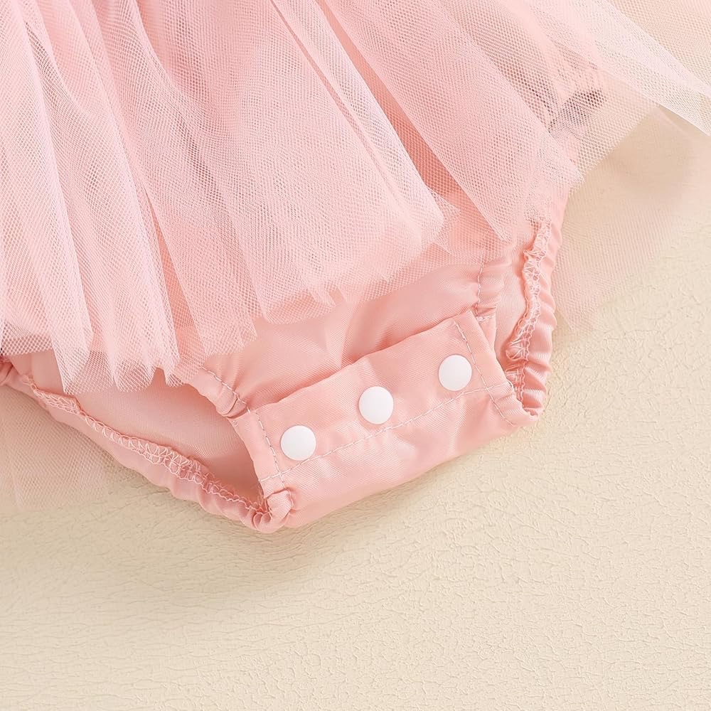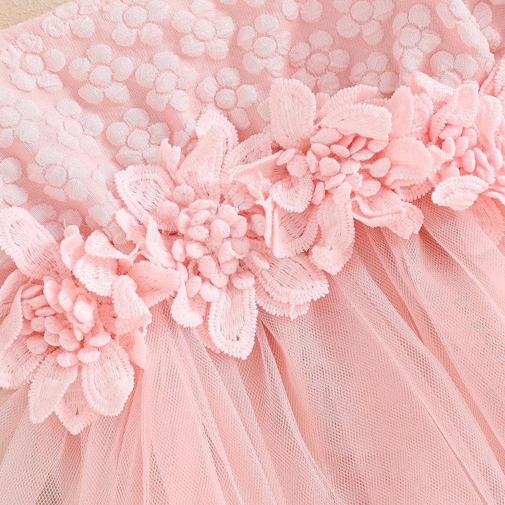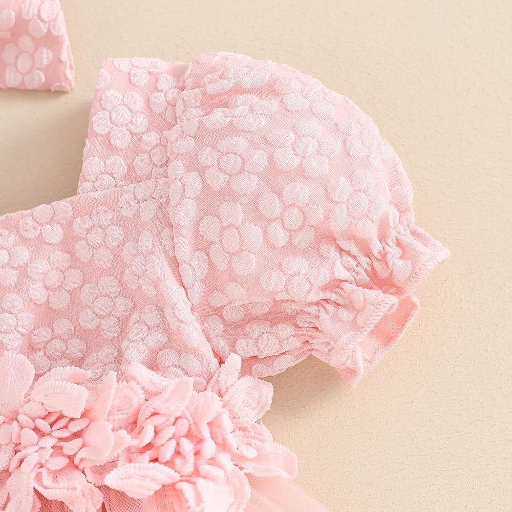 Set premium de 2 piese cu rochie body cu mânecă bufantă, tutu cu flori 3D și bentiță Pink Blossom Fairy