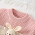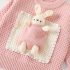 -Pulover din tricot de înaltă calitate, moale. Model de culoare roz, cu tricotaj gros, manșete elastice și accent – jucărie iepuraș în buzunar, care diferențiază modelul.