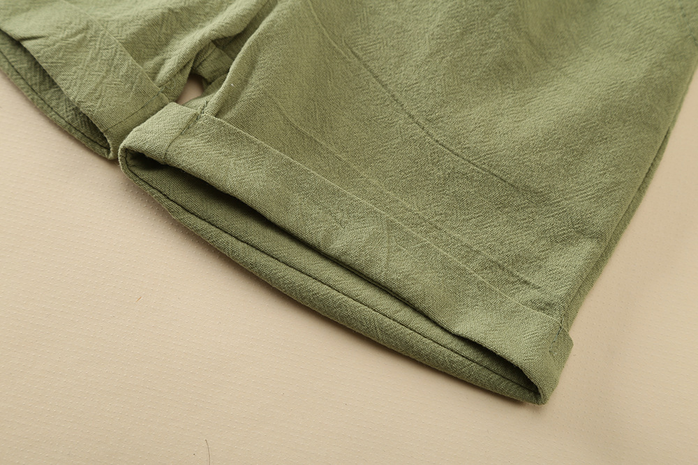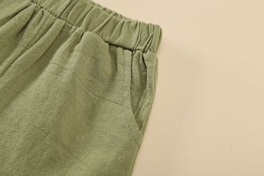 -Pantaloni scurți de culoare verde, cu croială liberă, care asigură o ventilație bună și confort pe tot parcursul zilei. Talie elastică pentru îmbrăcare ușoară și libertate de mișcare + tiv răsucit și două buzunare laterale pentru un confort suplimentar.