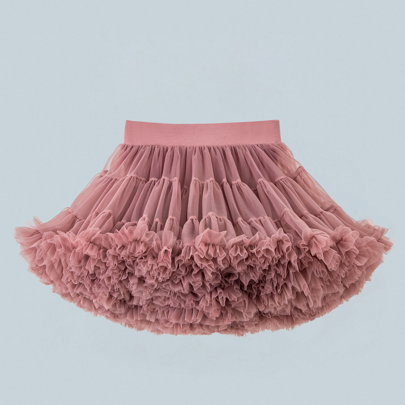– Fustă amplă tip tutu, realizată din material tulle moale, multistrat, în culoare roz-pudrat. Modelul are talie elastică pentru confort și potrivire perfectă, iar volumul bogat creează un efect spectaculos de prințesă și lejeritate la mișcare.