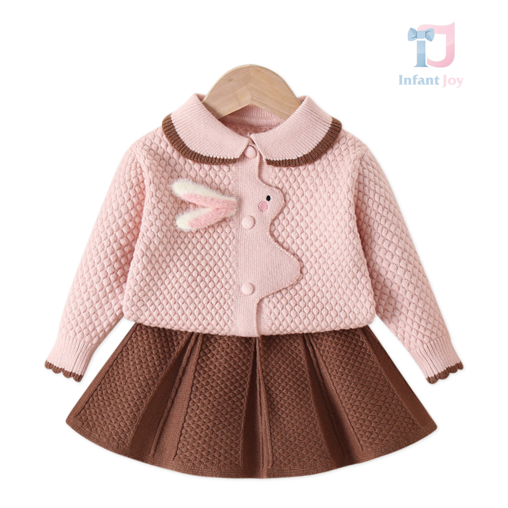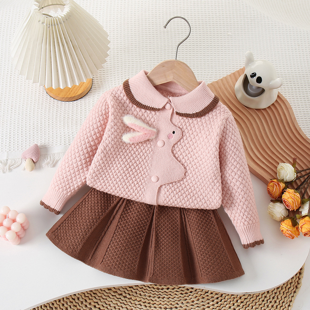 Set premium de 2 piese din tricot cu fustă și guler Peter Pan Whimsical Bunny