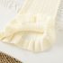 -Pantaloni din material tricotat, cu nervuri, de culoare crem, cu o croială “Charleston” delicată și modernă. Talie elastică și volane delicate în partea de jos pentru un plus de eleganță.