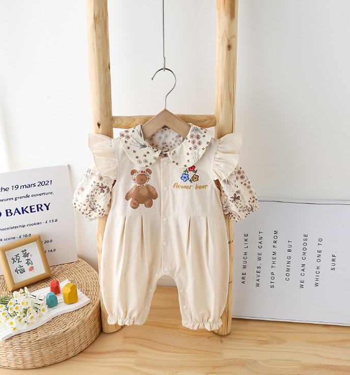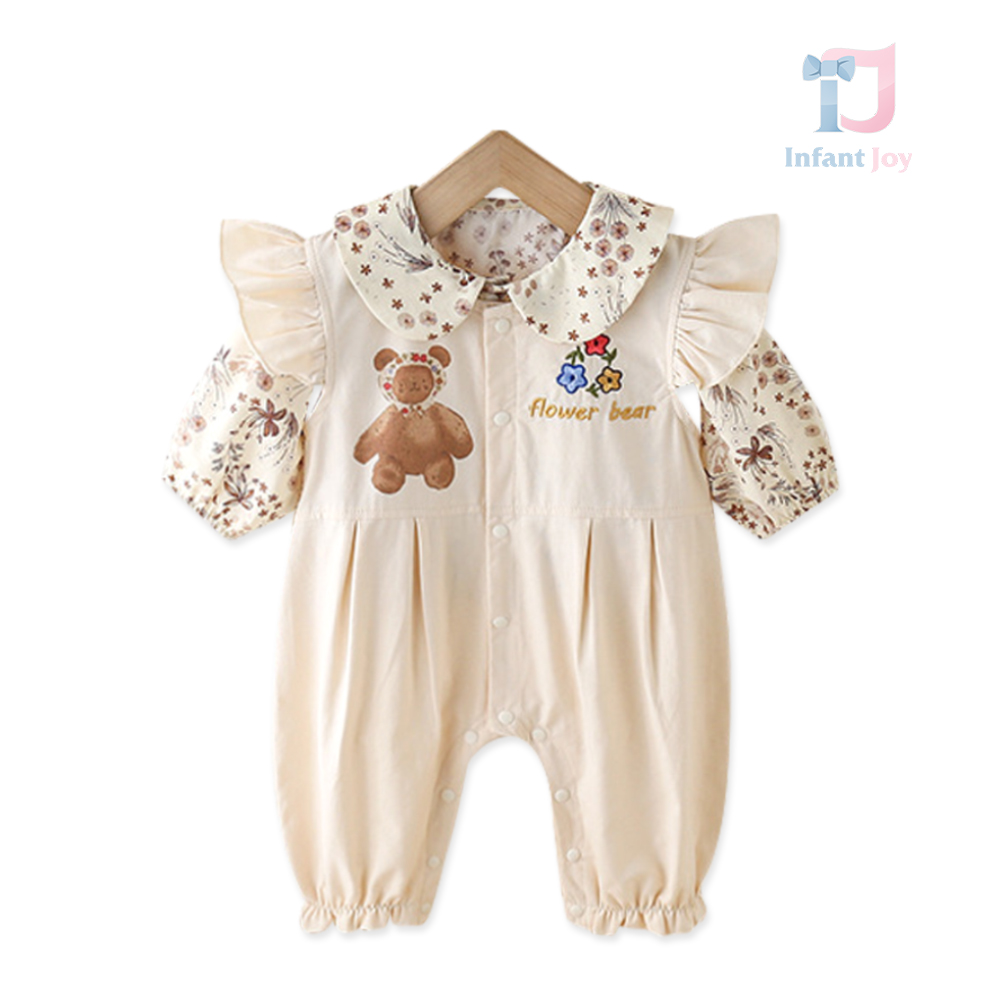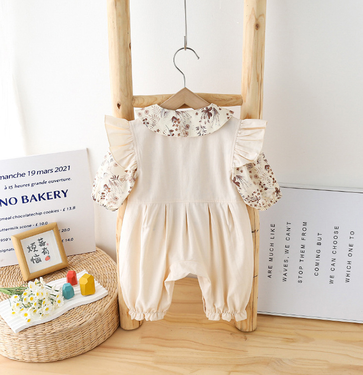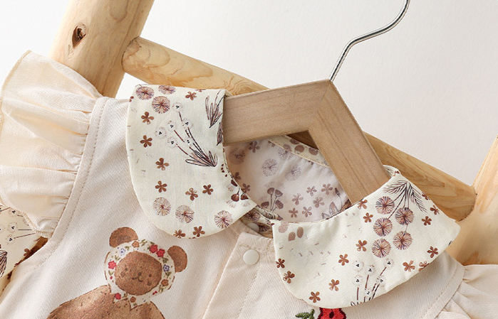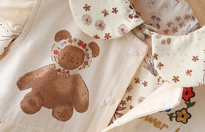 Set Premium de 2 piese, salopetă cu bucle și cămașă cu guler „Peter-Pan” Flower Bear