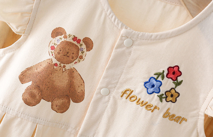 – Salopetă confecționată din material de înaltă calitate, cu un design modern. Adăugate volănașe tip “fluture” pe umeri, închidere completă cu capse pentru ușurința îmbrăcării + imprimeu și broderie care evidențiază modelul.