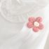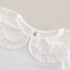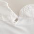 – Bluză albă din material ribbed, cu guler tip „Peter Pan” și mâneci bufante, îmbogățită cu floricele 3D pentru un aspect elegant.