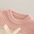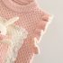 – Vestă din tricot gros de înaltă calitate, în nuanță de roz. Model decorat cu un iepuraș 3D într-un buzunar delicat, încadrat de dantelă franțuzească fină. Volănașe adorabile pe umeri pentru un plus de farmec.