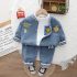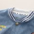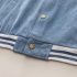 -Bomber din material denim de înaltă calitate, de culoare deschisă, cu imprimeuri adăugate și manșete accentuate pentru un design modern. Închidere completă în față cu nasturi.