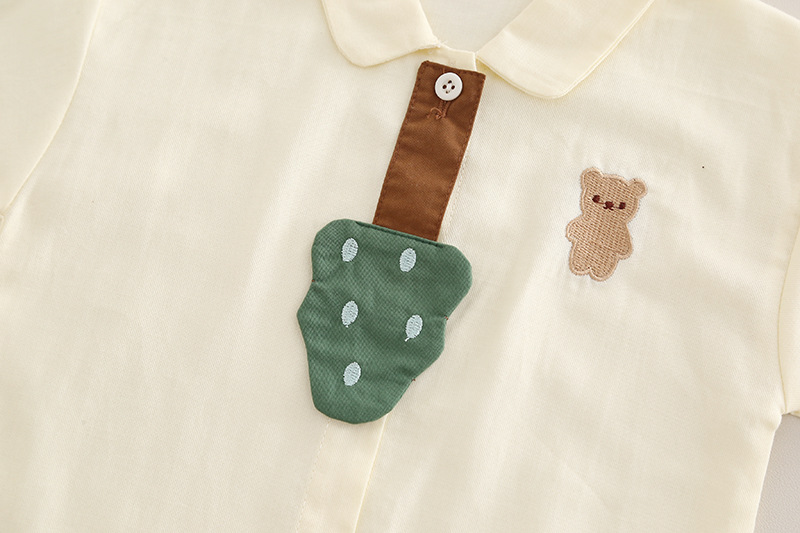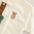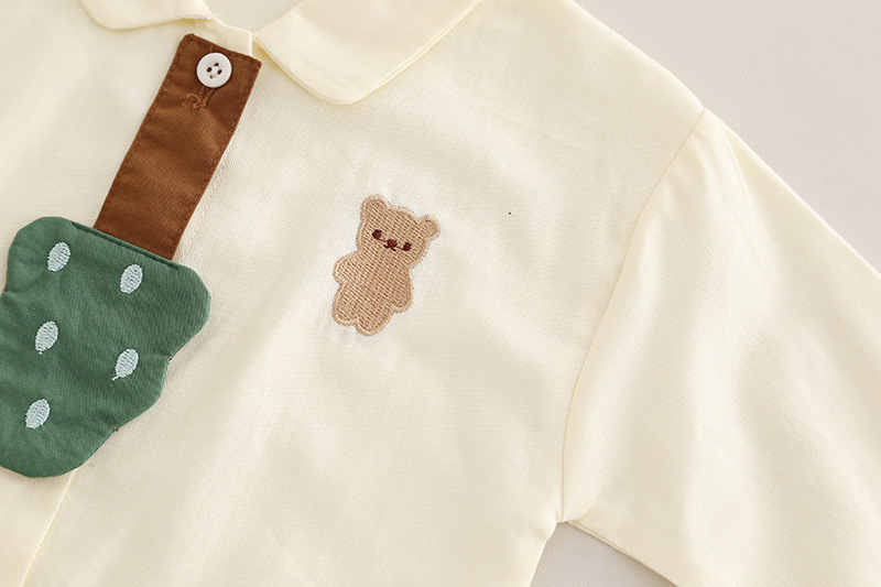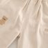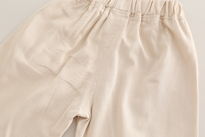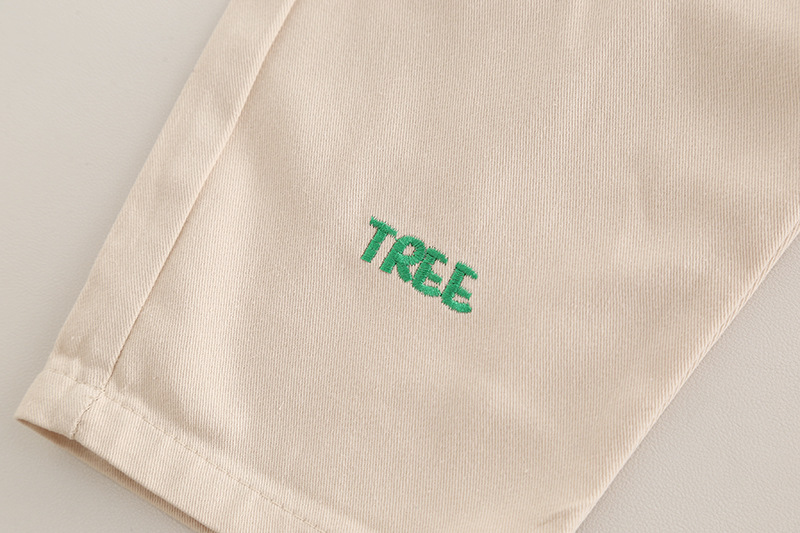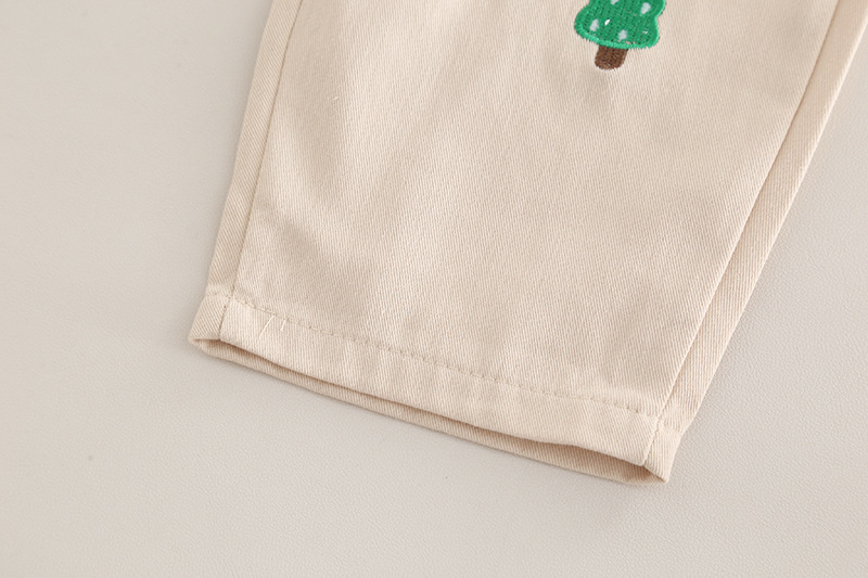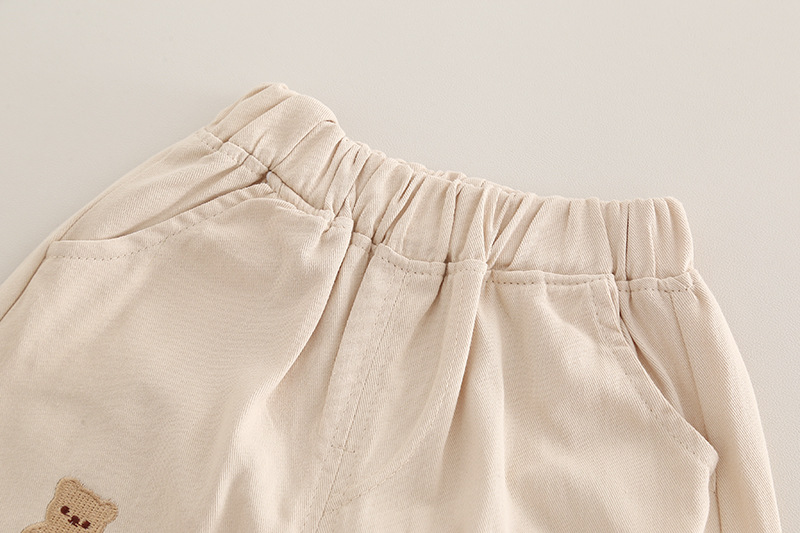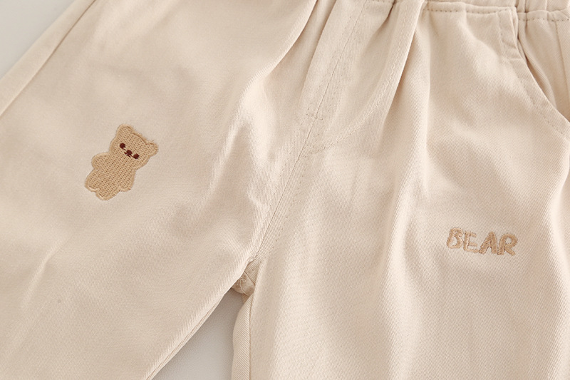 -Pantaloni bej din bumbac, cu două buzunare, talie elastică și broderii – ursuleț și brazi în ton cu tema. Cuvântul „BEAR“ este brodat pe lateral pentru un finisaj rafinat