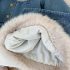 – Geacă din denim cu o croială rafinată, decorată cu o bogată blană ecologică la guler, în partea din față și la manșete. Modelul se remarcă prin nasturi metalici decorativi în față, care permit o închidere ușoară, precum și prin buzunarele frontale ce adaugă atât funcționalitate, cât și stil. Accentele pufoase oferă un aspect luxos și asigură o căldură delicată. Modelul este prevăzut cu vată moale pe interior.