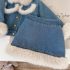 Set Premium denim de 2 piese cu jachetă și fustă cu blană eco voluminoasă Aurora Fluff
