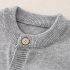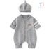 – Salopetă tricotată de culoare gri, confecționată dintr-un material moale și plăcut la atingere. Modelul are o croială simplă și dreaptă, iar în față se închide cu un șir de frumoase nasturi din lemn. Pe piept este adăugată o drăguță broderie cu un ursuleț și inscripția BABY, care oferă un aspect delicat și jucăuș. Unul dintre mâneci este decorat cu două linii maro pentru un accent sport-elegant. Mânecuțele și terminațiile de la picioare sunt prevăzute cu manșete pentru un aspect mai compact și stilat.