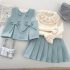 Set Premium elegant de 3 piese cu vestă cu elemente decorative, pulover rib cu guler extravagant și fustă plisată Paris Belle
