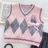 – Vestă tricotată, confecționată din tricotaj moale și confortabil în roz și gri, cu un model elegant în formă de romb. Accentele sunt reprezentate de aplicațiile pufoase cu iepuraș și fundița satinată, care conferă un aspect unic și jucăuș.