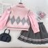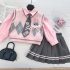 Set premium elegant de 4 piese din vestă cu aplicație plușată, cămașă, fustă plisată și cravată Student Bunny