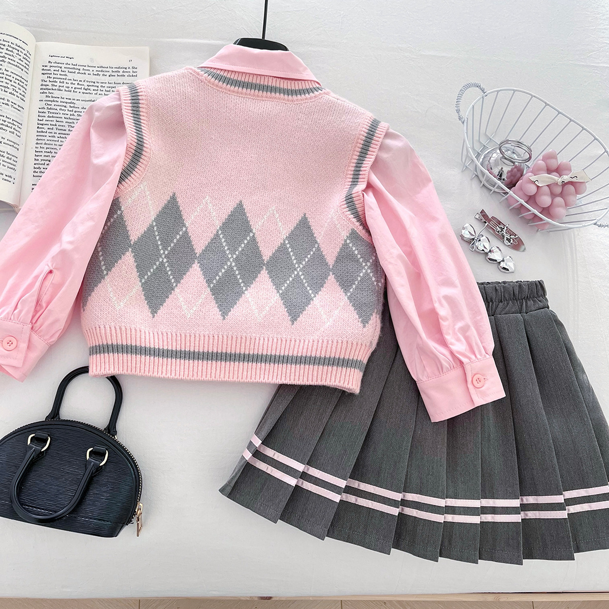 💗 Set elegant premium de 4 piese pentru fetiță – stilat, rafinat și inspirat de ținuta clasică de școlăriță, cu un farmec adorabil specific copilăriei.