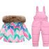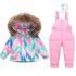 – Salopetă tip pantaloni de schi – model căptușit în roz pastel, cu bretele reglabile și fermoar frontal pentru îmbrăcare ușoară. Manșetele de jos asigură o potrivire confortabilă și protecție în timpul jocului în zăpadă.