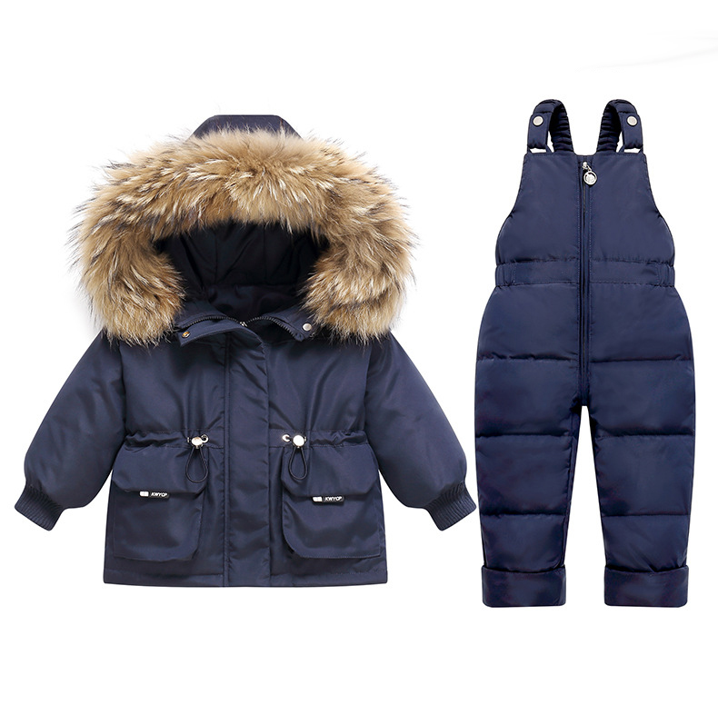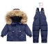 Set premium impermeabil de schi din 2 piese cu salopetă și parka cu glugă cu blană naturală Winter Adventure Darkblue