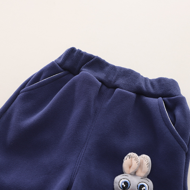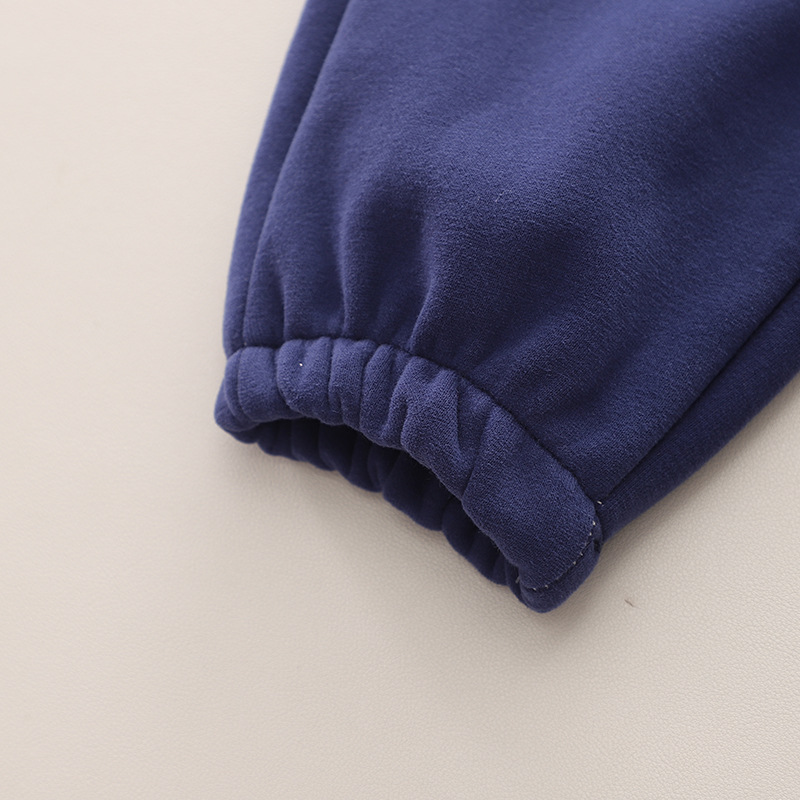 -Pantaloni călduroși și căptușiți, de culoare albastru închis, asortați perfect cu partea superioară. Cu elastic în talie și la glezne pentru confort, două buzunare frontale și un element 3D pe un crac.