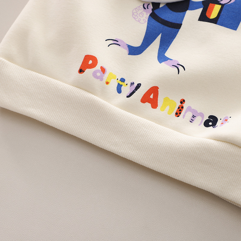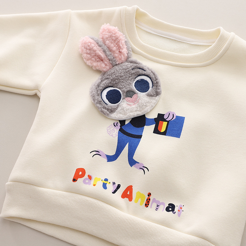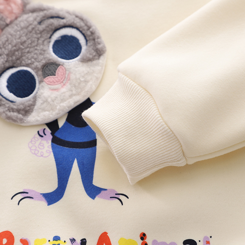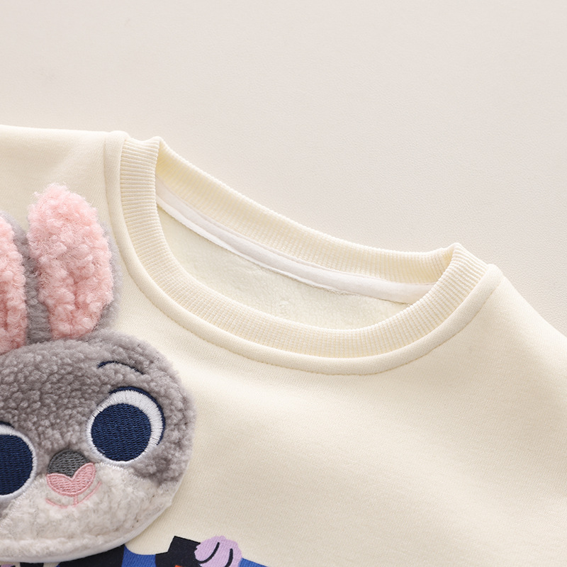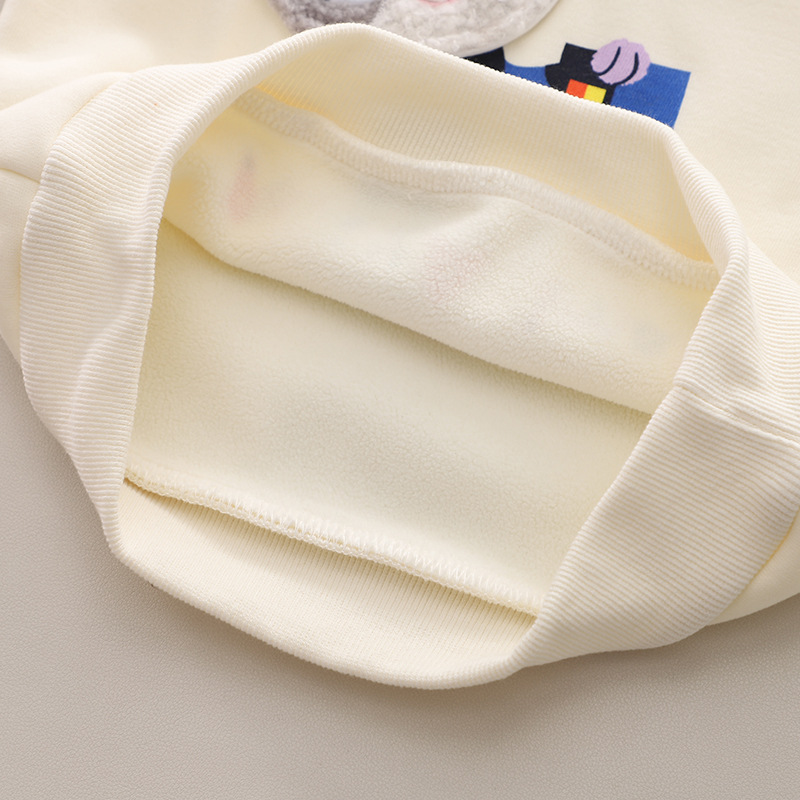 -Bluză/hanorac din material de înaltă calitate, moale și căptușit, de culoare vanilie. Model cu croială standard, cu o mare aplicație pufoasă și un imprimeu cu iepuraș.