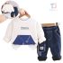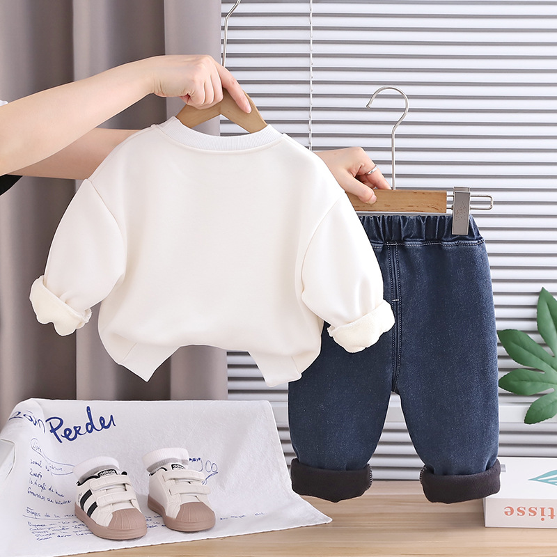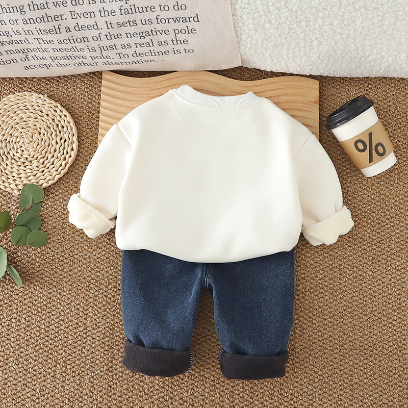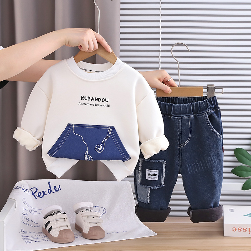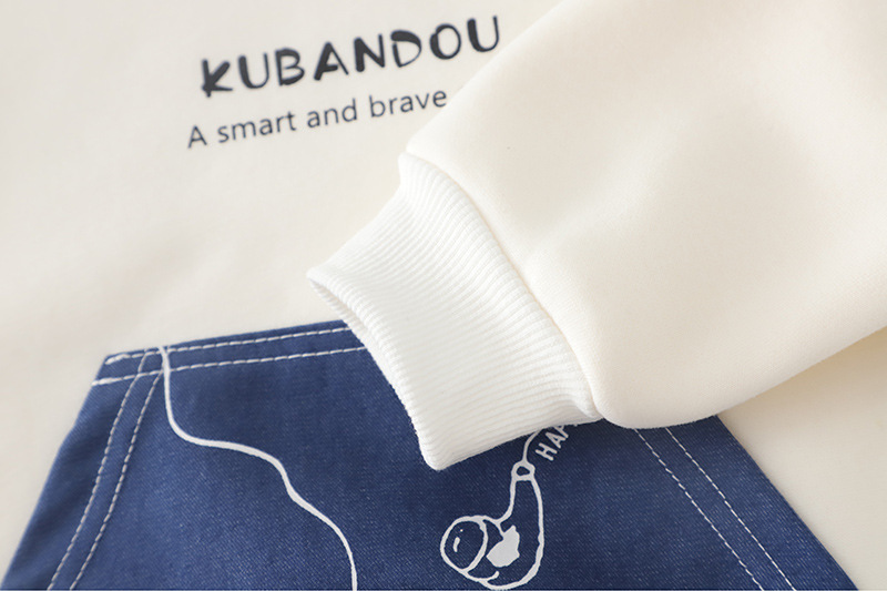 Set premium matlasat de 2 piese cu bluză/hanorac cu buzunar tip „cangur” și pantaloni din denim Indigo Sound