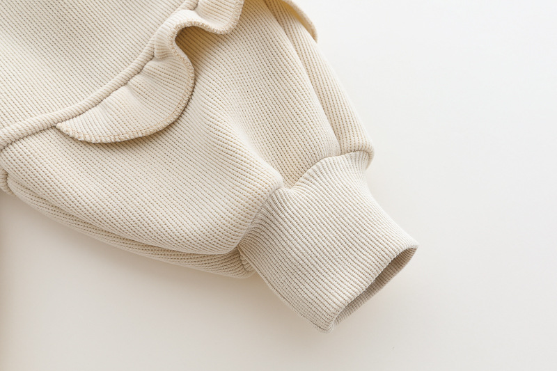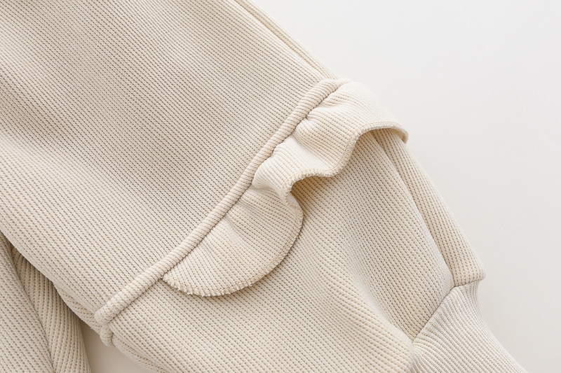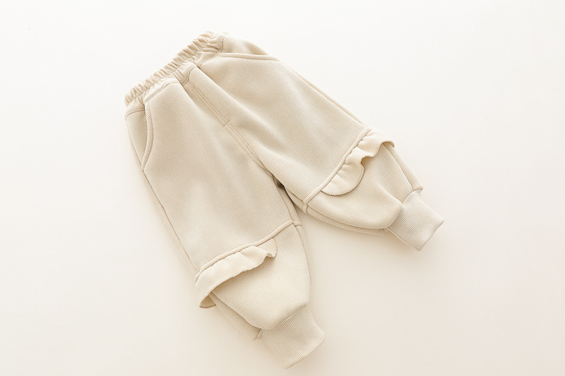 – Pantaloni din denim de înaltă calitate, cu volănașe la baza cracilor și căptușeală călduroasă la interior – combinația perfectă de stil și confort.