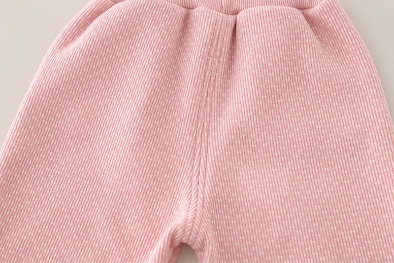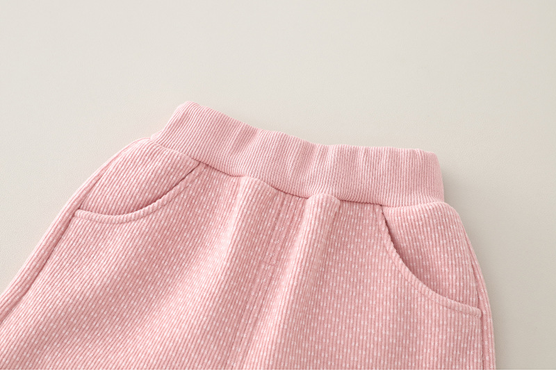 – Pantaloni vatuiți într-o nuanță delicată de roz, cu textură fină, din material elastic și călduros. Prevăzuți cu două buzunare și manșete elastice pentru confort sporit și protecție împotriva frigului.