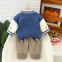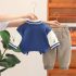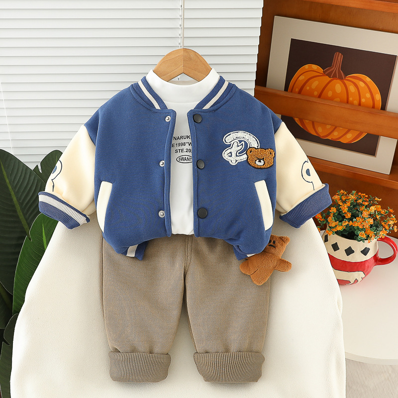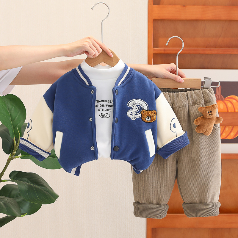 Set premium matlasat de 3 piese cu jachetă/bomber, bluză tip polo și pantaloni din denim cu aplicație 3D Teddy Crew Blue