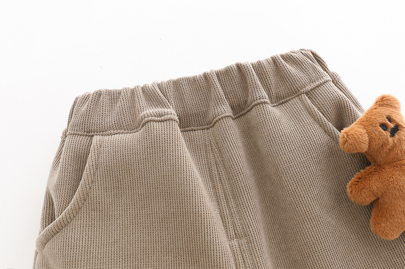 – Pantaloni într-o nuanță caldă de maro, cu talie și manșete elastice, confecționați din denim de înaltă calitate.