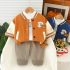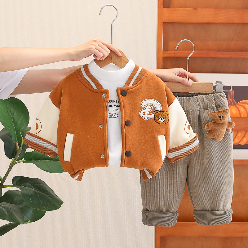 • Set premium matlasat de 3 piese cu jachetă/bomber, bluză tip polo și pantaloni din denim cu aplicație 3D Teddy Crew