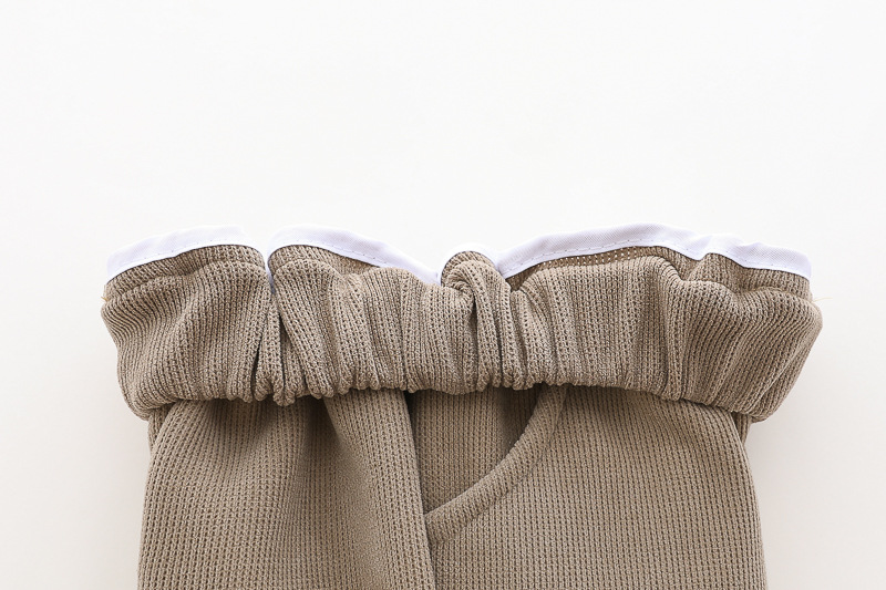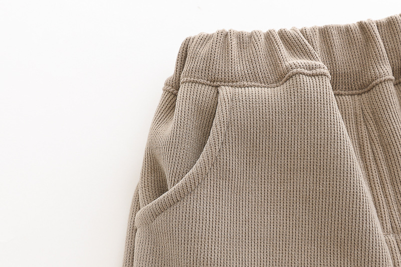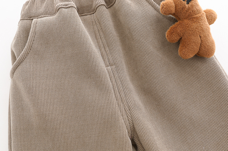 – Pantaloni matlasați într-o nuanță caldă de maro, cu talie și manșete elastice, confecționați din denim de înaltă calitate.