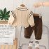 🤎 Compoziție: Vestă – 95% acril, 5% elastan; Cămașă și pantaloni – 95% bumbac, 5% poliester