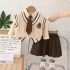 🤎 Compoziție: 95% acril, 5% elastan; Cămașă și fustă – 85% bumbac, 15% poliester