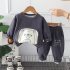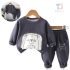– Pantalon în același ton de gri închis, cu talie elastică comodă. Are buzunare laterale și un imprimeu drăgălaș cu ursuleț, care completează armonios bluza. Tivul ușor strâns al pantalonilor oferă un aspect sportiv și ordonat. Țesătura este moale, călduroasă și plăcută la atingere pentru pielea copilului.