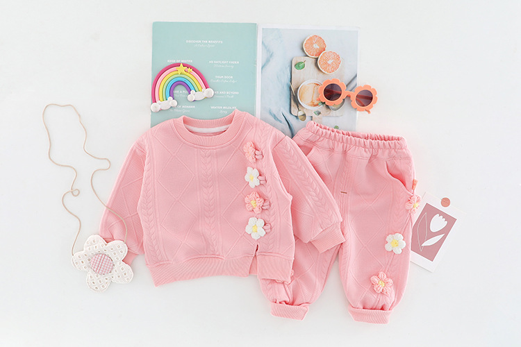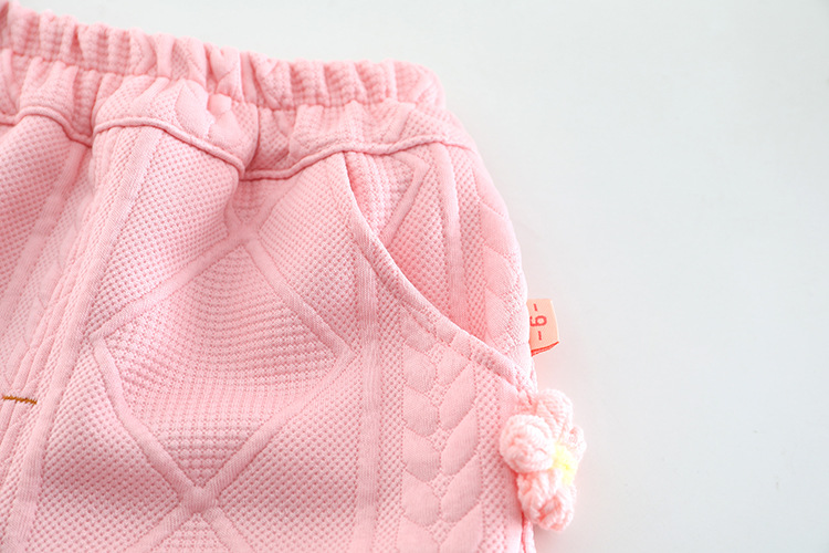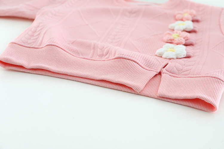 – Pantalon – model confortabil, cu croială lejeră, talie elastică și manșete la glezne pentru stabilitate în mișcare. Florile decorative 3D se asortează cu bluzița și completează ținuta într-un mod extrem de drăguț și elegant.