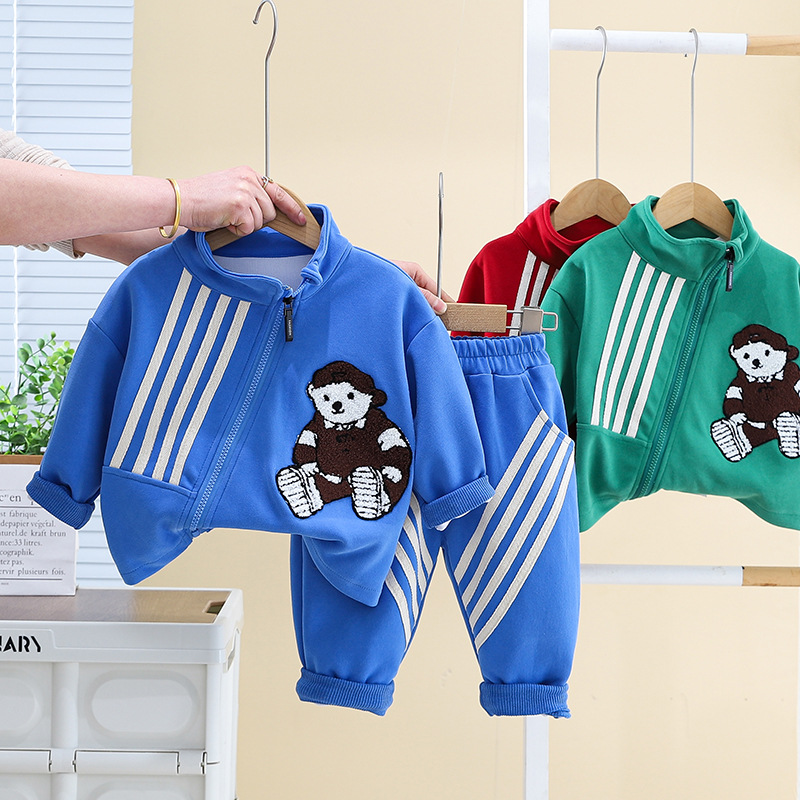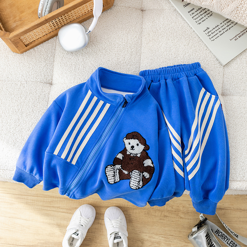 Set sport de 2 piese cu broderie 3D Bear Sportsman Blue