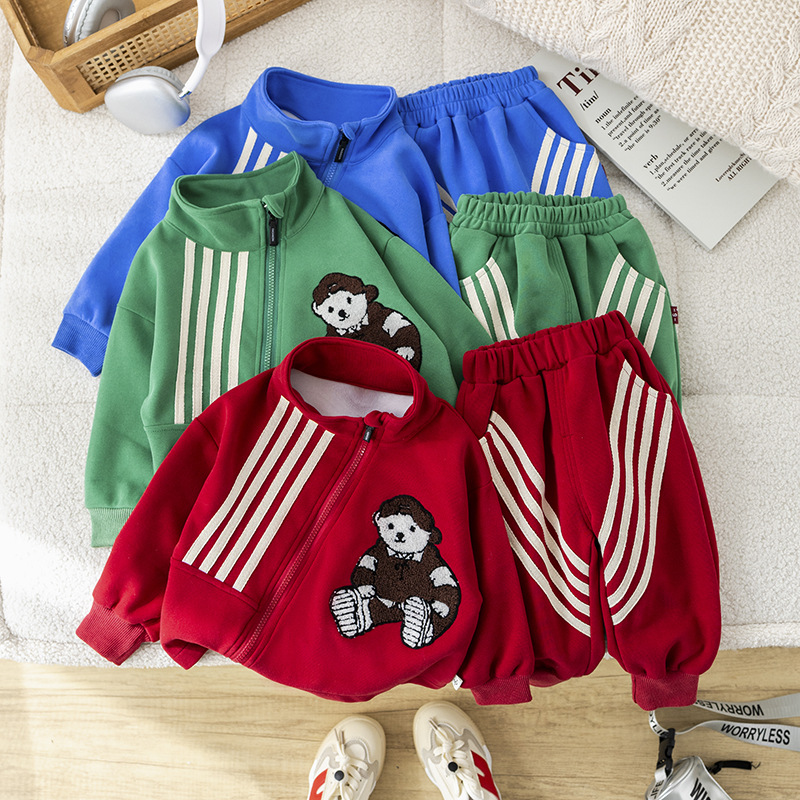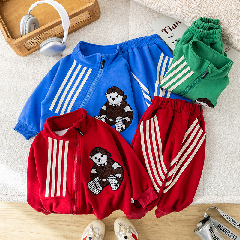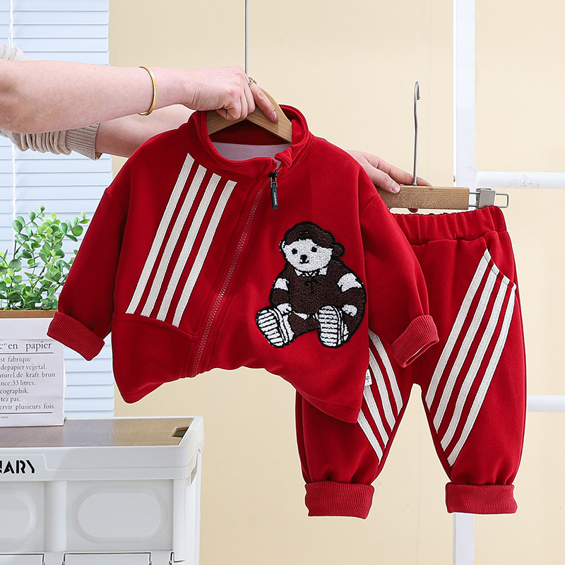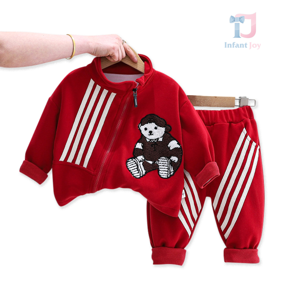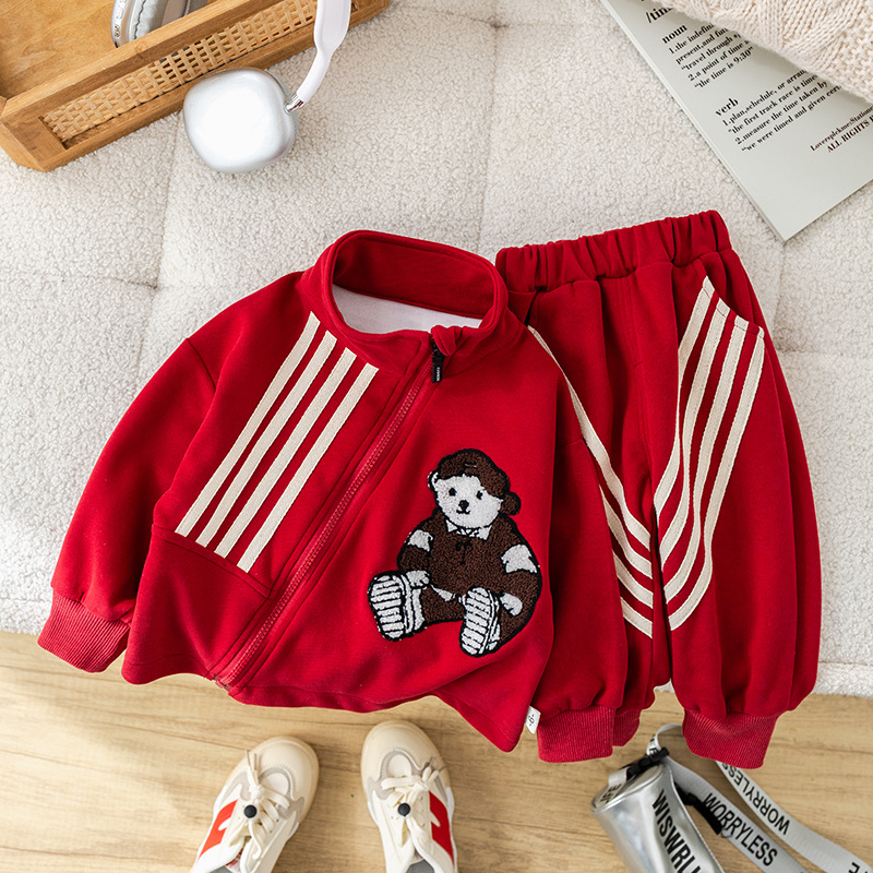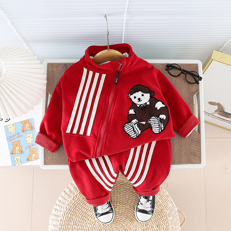 Set sport de 2 piese cu broderie 3D Bear Sportsman Red