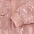 -Hanorac confecționat din material moale, tip “waffle”, într-o nuanță delicată de roz, cu decorațiuni în relief cu ursuleți și inimioare. Model cu guler înalt și închidere completă în față cu fermoar. Sunt adăugate două buzunare decorative care completează aspectul, precum și manșete elastice pentru o potrivire confortabilă.