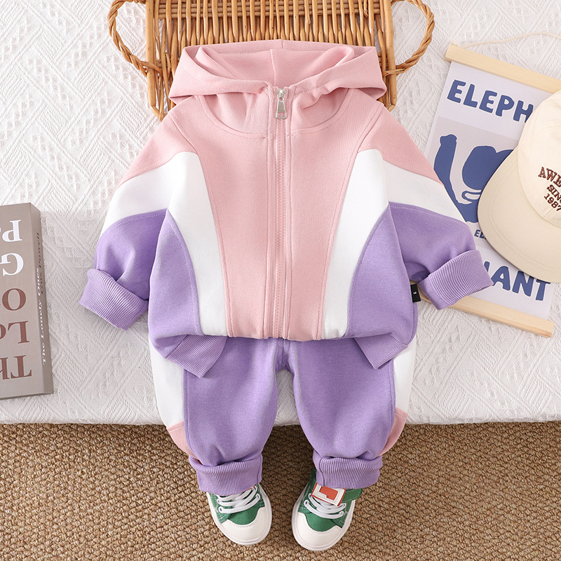 Set sport de 2 piese cu hanorac cu glugă și pantaloni Pink & Purple Motion