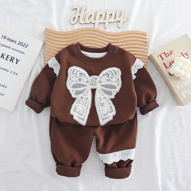 🤎 Set sport elegant și extrem de fin din 2 piese pentru fetiță – confortabil, moale și cu un accent delicat, romantic, care atrage privirea de la prima vedere.