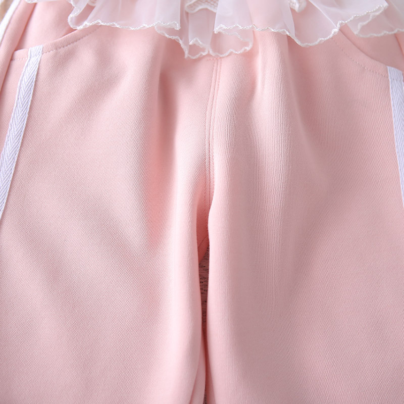 • Set sport de 2 piese din bluză/sweatshirt cu aplicație mare, volane și pantaloni Sporty Curls Pink