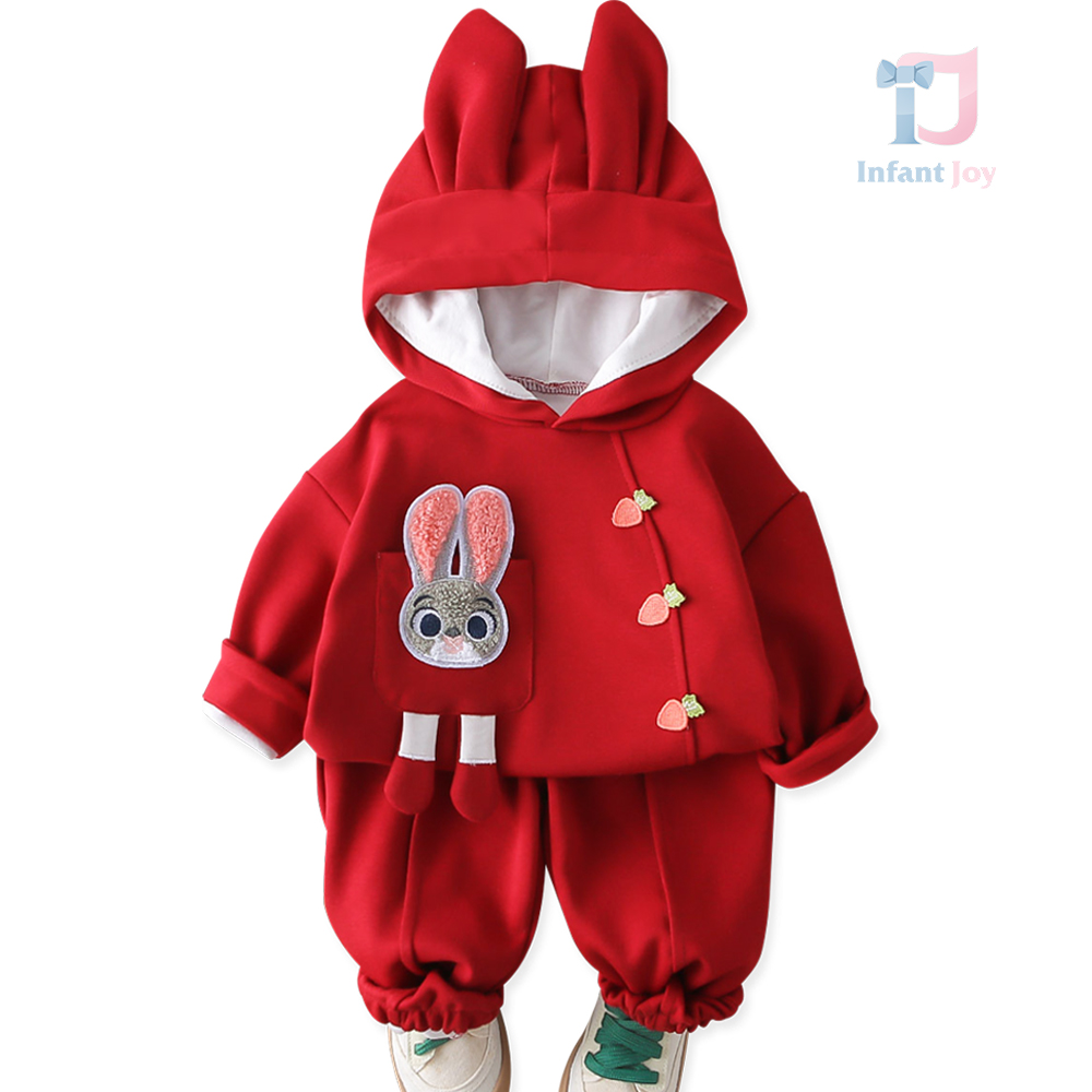 Set sport de 2 piese din bluză/sweatshirt cu glugă, elemente 3D și pantaloni Bunny Carrot Red